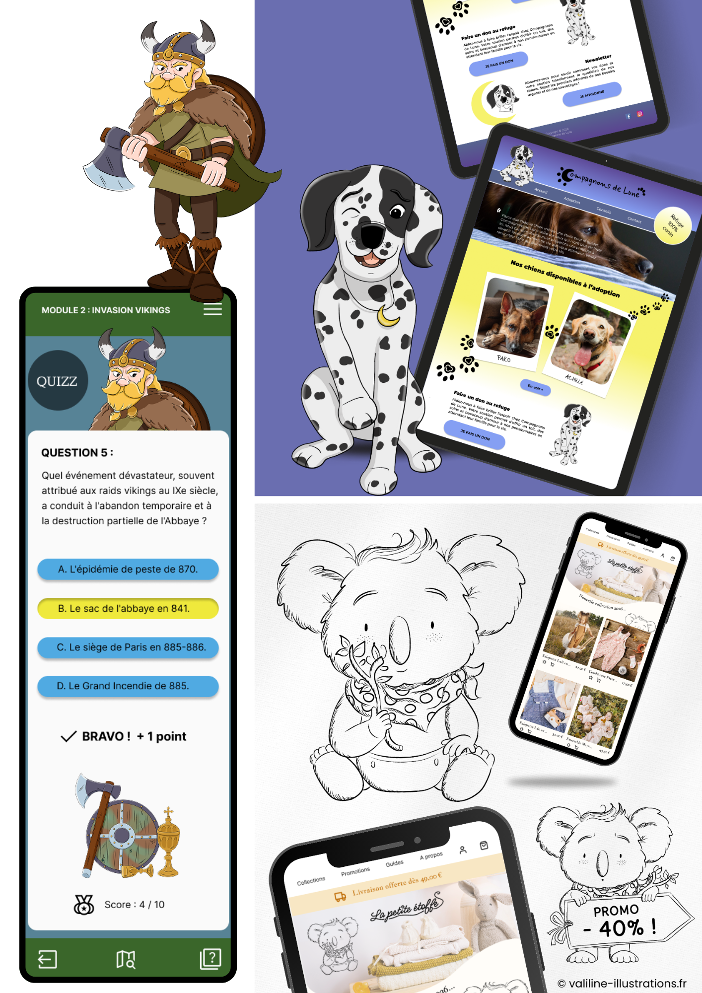 Création de jeux et d’activités illustrées pour stimuler la créativité et apprendre en s’amusant.