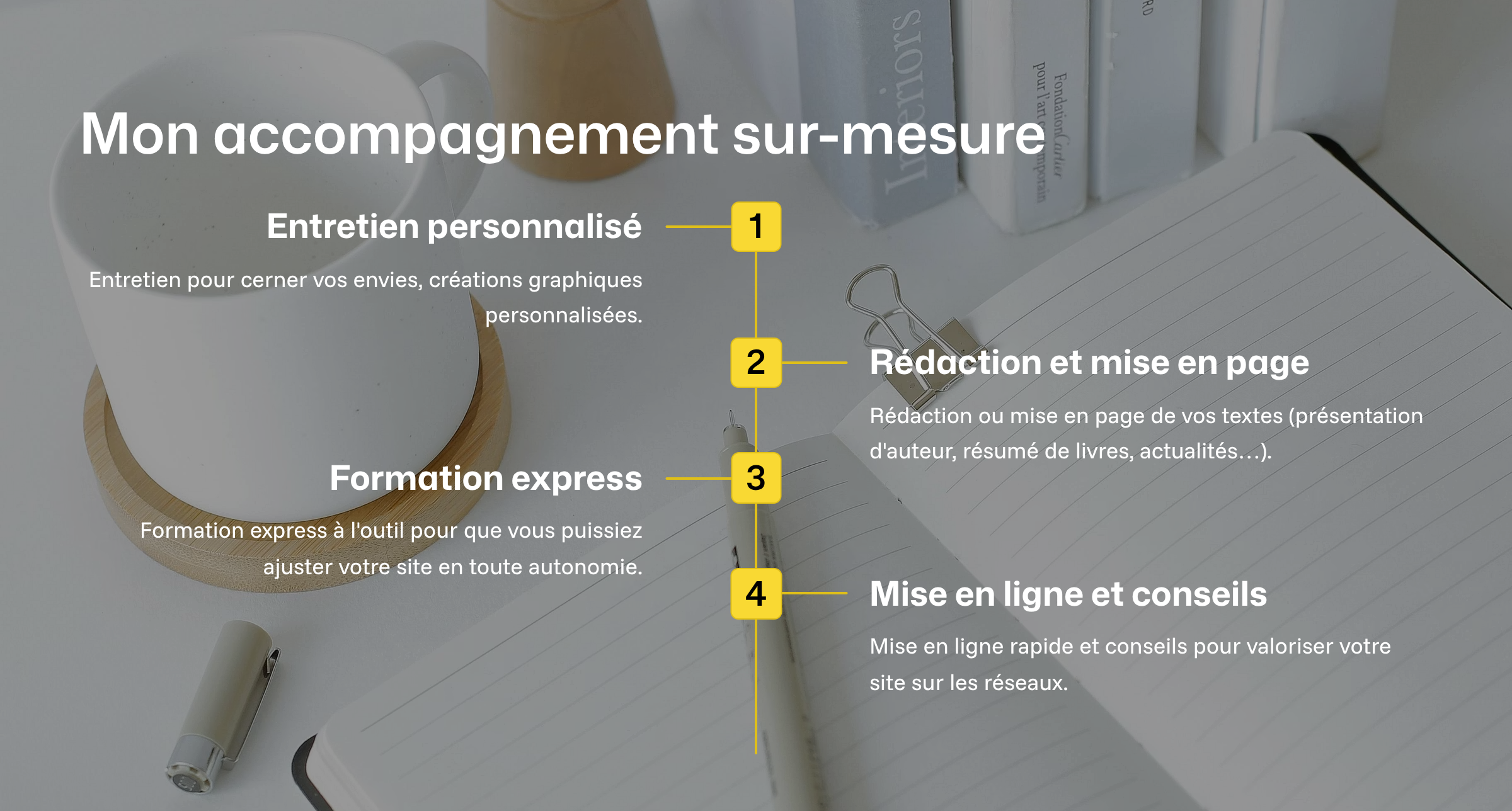 Dans tous les cas, je suis là pour vous écouter, vous guider et créer un site fidèle à votre univers d’auteur.e, centré sur vos objectifs : séduire de nouveaux lecteurs, partager votre passion et développer votre communauté !