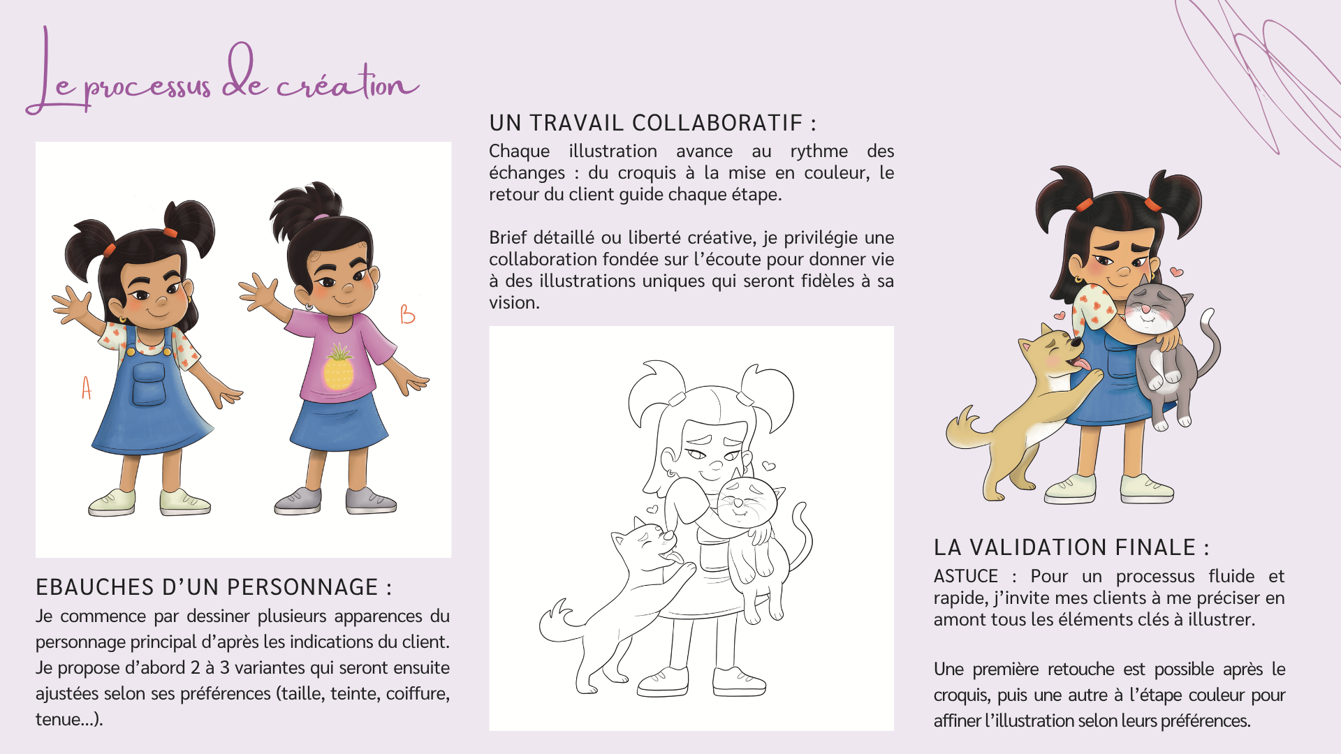 « Vous validez chaque croquis, chaque mise en couleur, pour que chaque illustration corresponde vraiment à votre vision. »