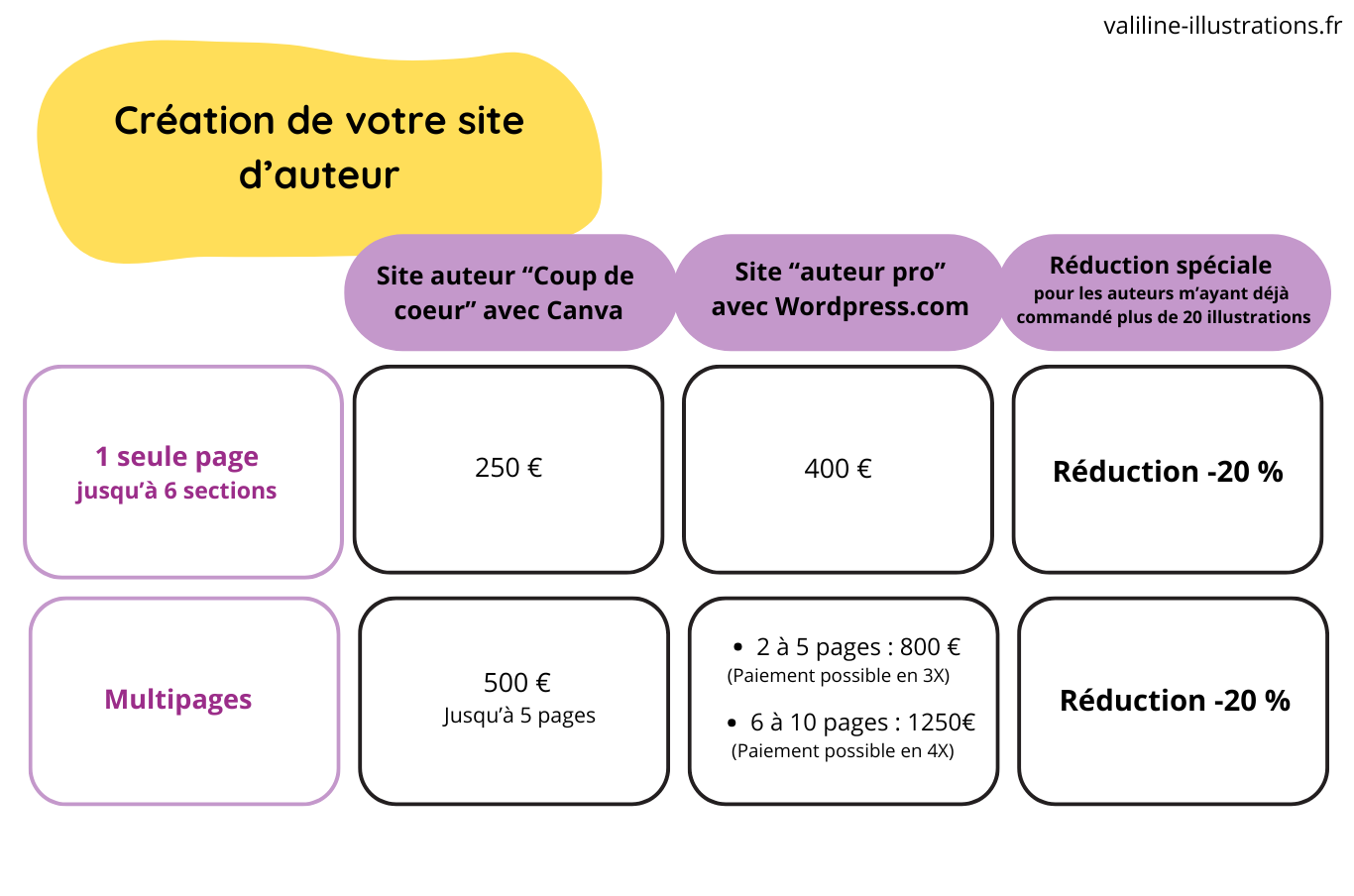 - Paiement en 2 fois : acompte au démarrage de la prestation, le reste sera à régler une fois la prestation terminée.